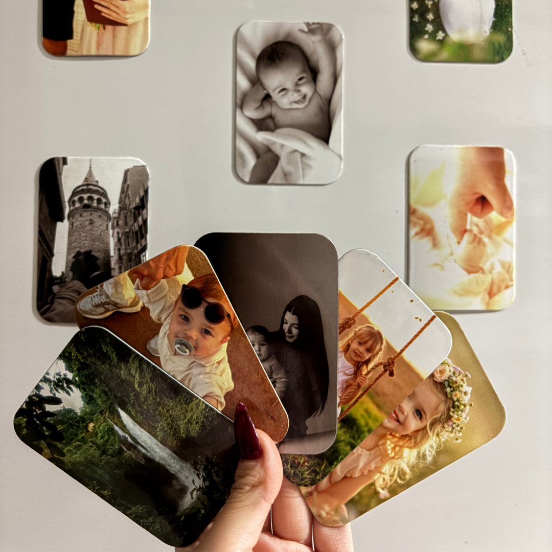 Aile fotoğraflarını magnet seti yaptım, evde herkes beğendi.